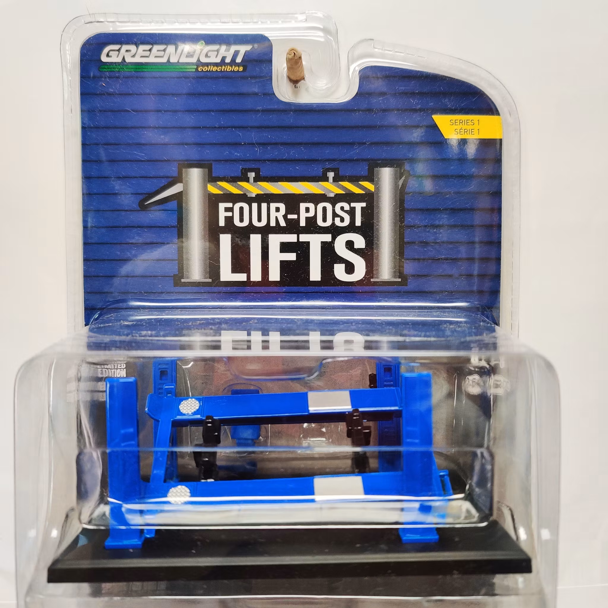 Säljes som defekt - Skala 1/64 Blå och Svart fyrpelarlyft från Greenlight