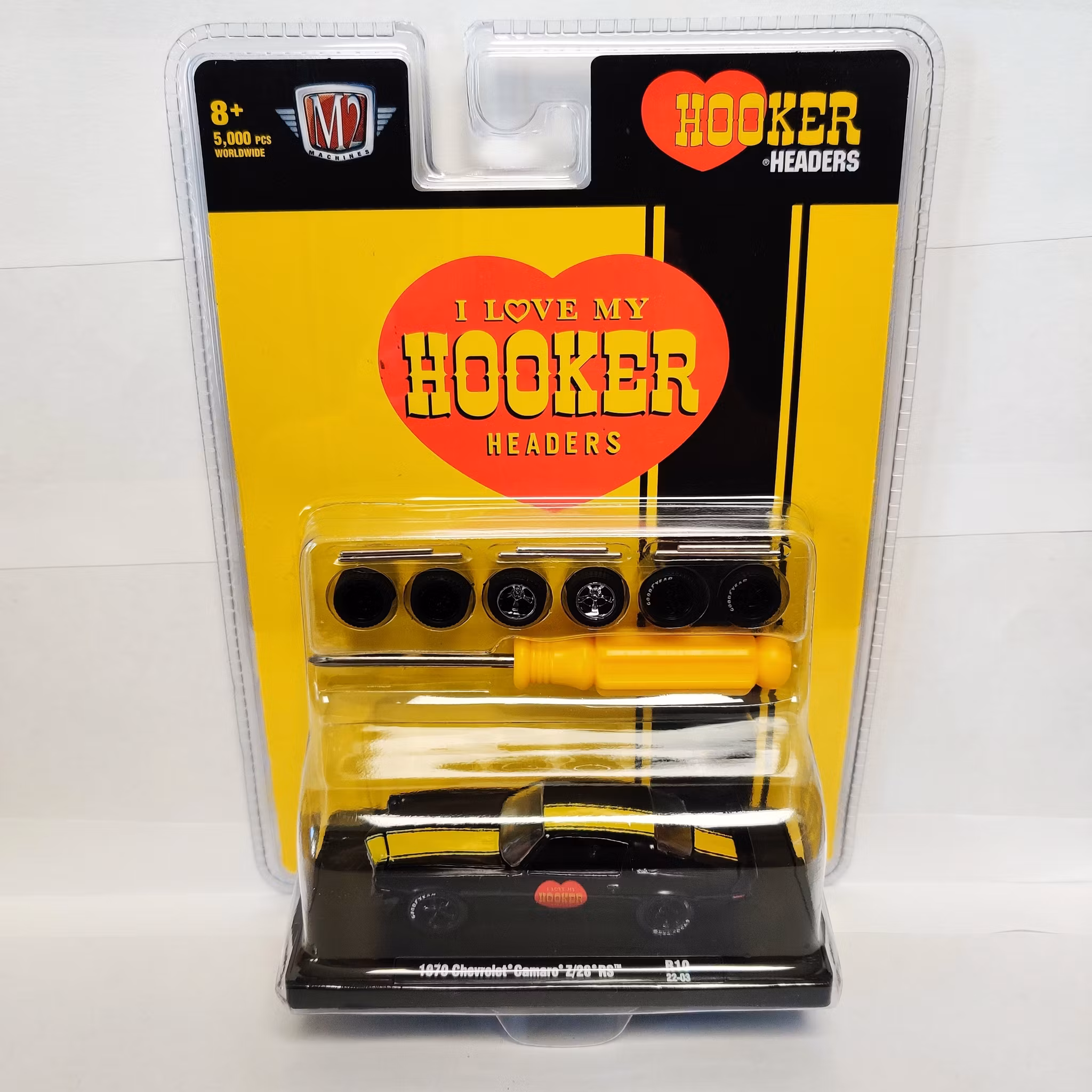 Skala 1/64 Chevrolet Camaro 70' "Hooker" m extra däck m fälg från M2 Machines