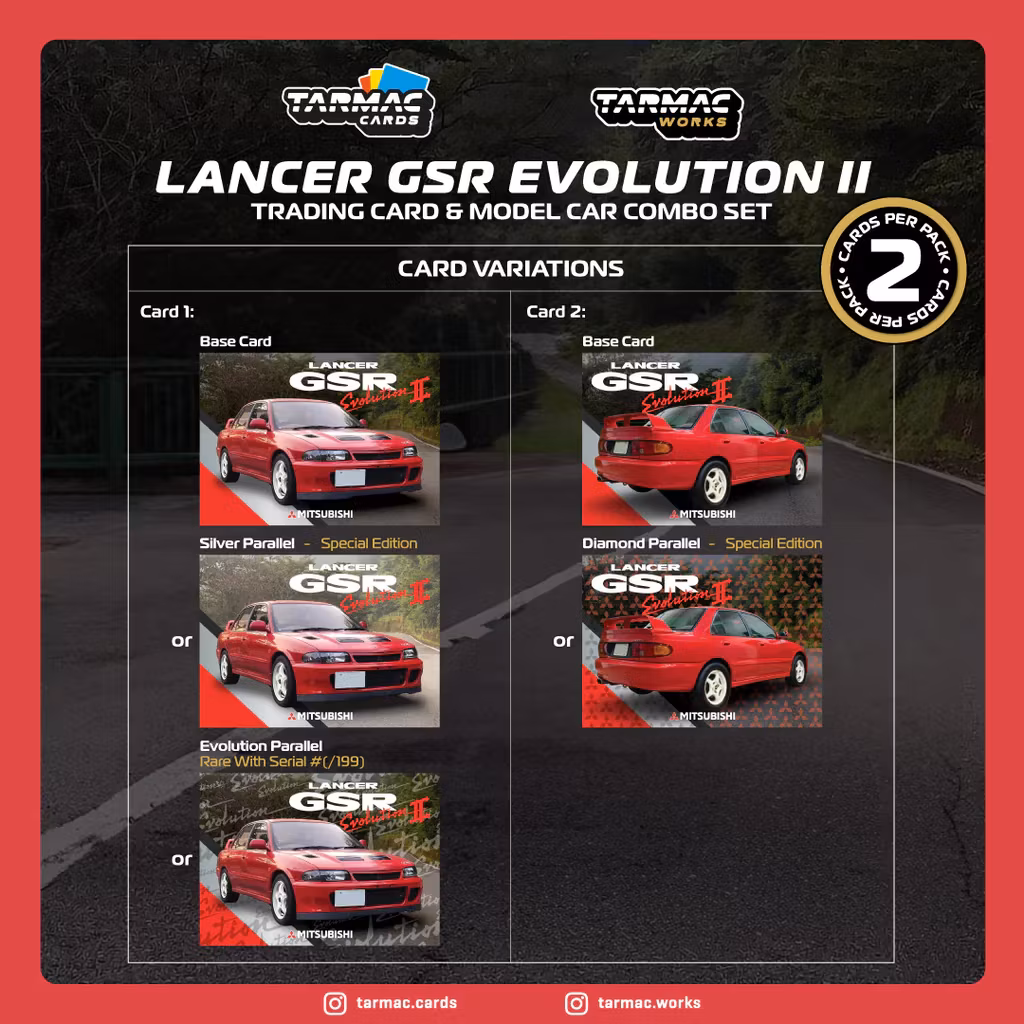 Skala 1/64 Mitsubishi Lancer GSR Evolution II Red with Tarmac Cards fr Tarmac Works