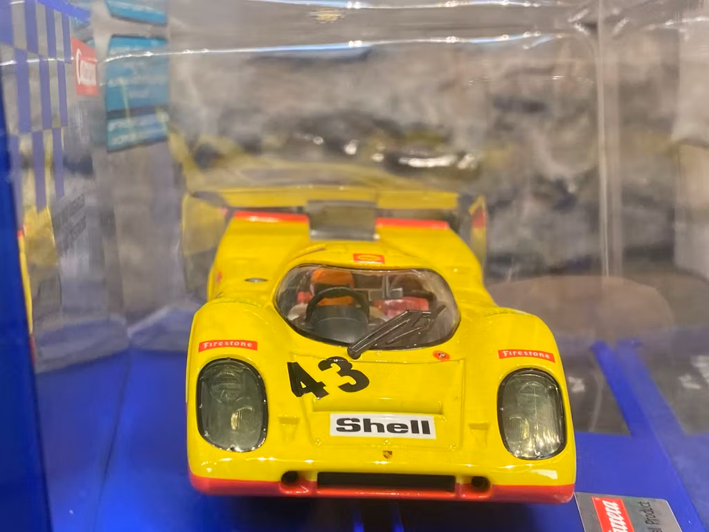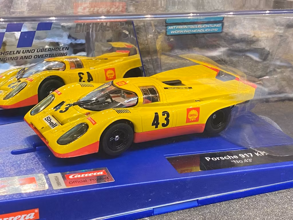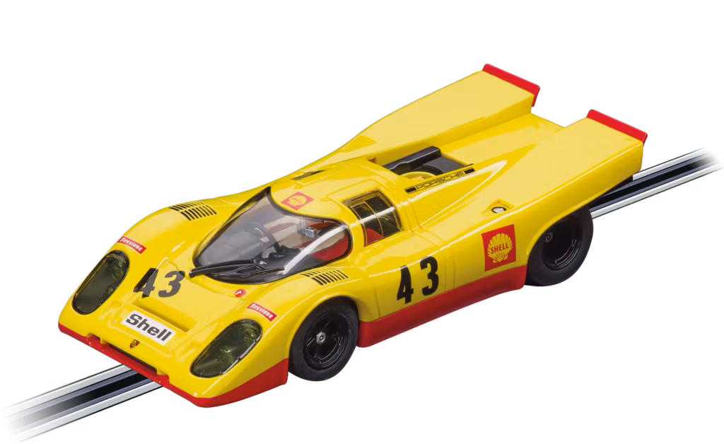 The Carrera DIGITAL 132 Porsche 917 KH ‘No.43’ is a faithful reproduction of one of the most important cars in Porsche’s long and successful reign as a manufacturer of motor racing cars. The Porsche 917 has gone down in history as the most successful racing car of the 1970s. Dutch driver Gijs van Lennep brought home Porsche’s first overall victory in the no.43 car at the 24-hour race in northern France.