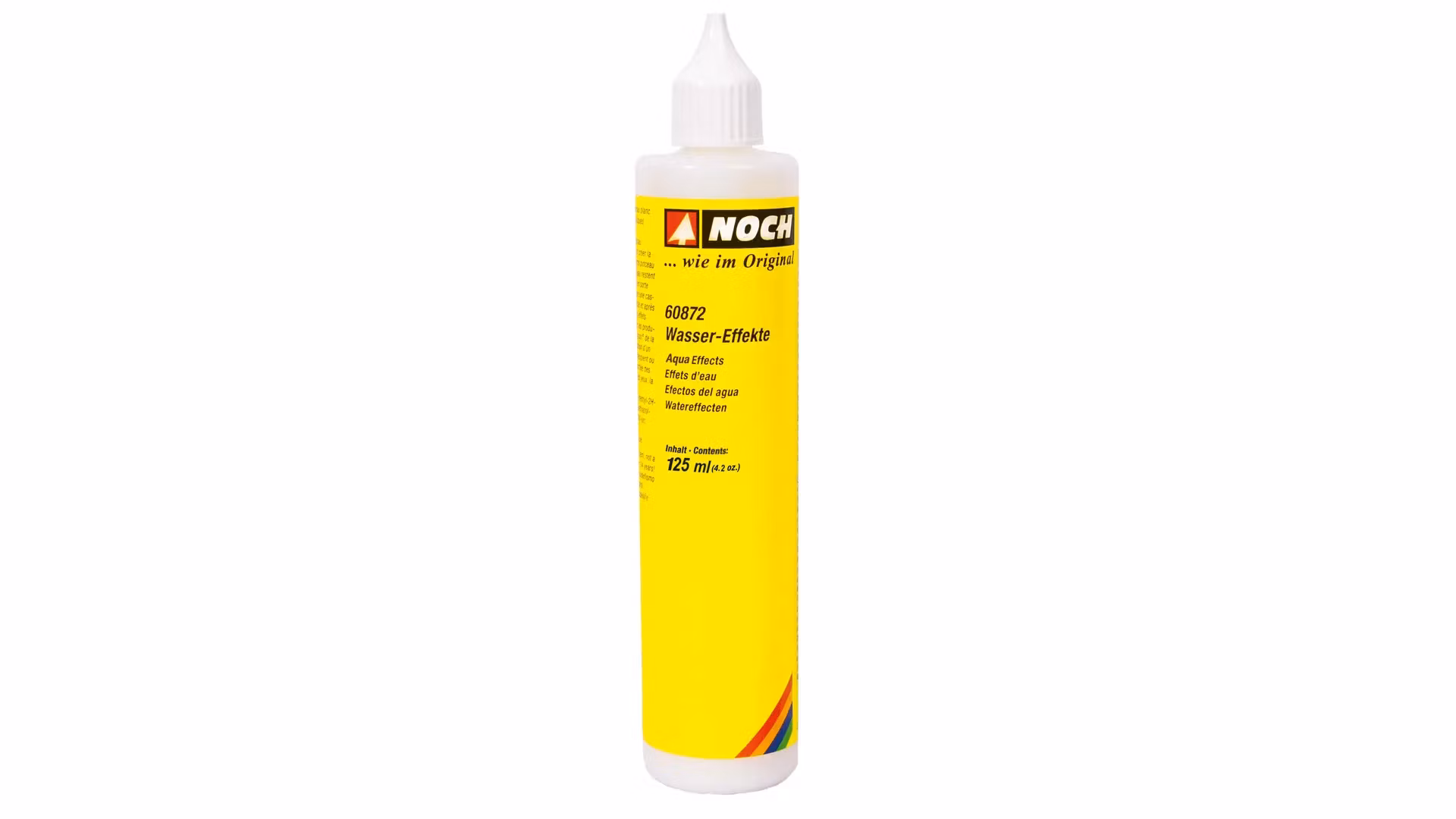 "Aqua Effects" consist of a white viscous substance that dries out flexible and milky transparent. Due to its very tough consistency, you can also use the material on steep areas, e.g. for waterfalls. To create rapids, for example, simply apply a few strips of Aqua Effects to a river, which you then distribute with a coarse bristle brush or toothpick. Due to light reflection, the substance now resembles a turbulent, realistic water surface.