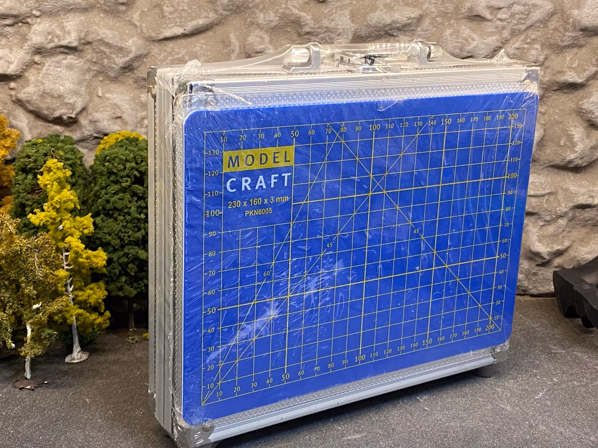 Various knives and scalpels with replaceable blades, different handles for the blades, cutting mat, sharpener, etc.
