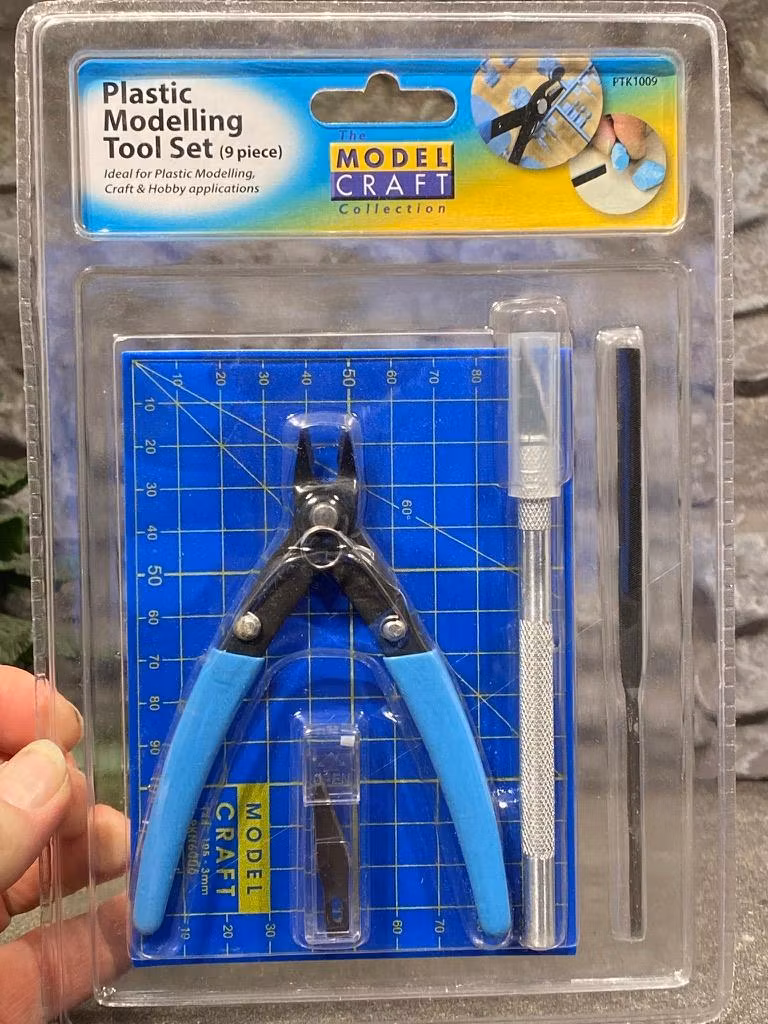 Contains plastic sprue cutter, mini flat file, craft knife + 5 blades and self-healing cutting mat A6.