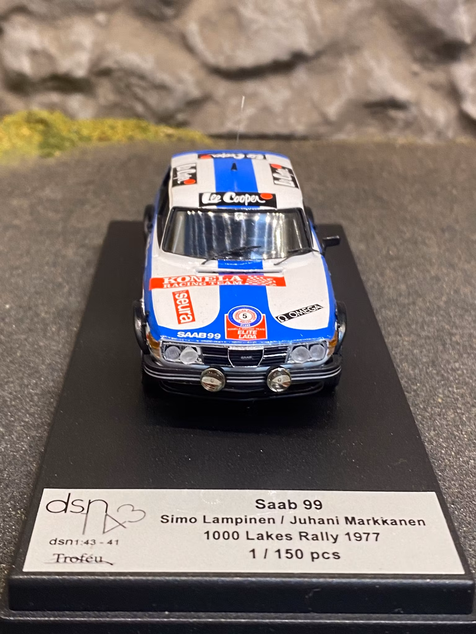 Skala 1/43 Saab 99, Simo Lampinen/Juhani Markkanen, 1000 lakes rally 77' f Troféu