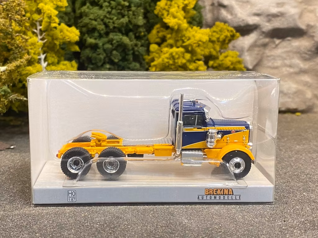 Skala 1/87 Peterbilt 281 Dark blue/yellow fr Brekina